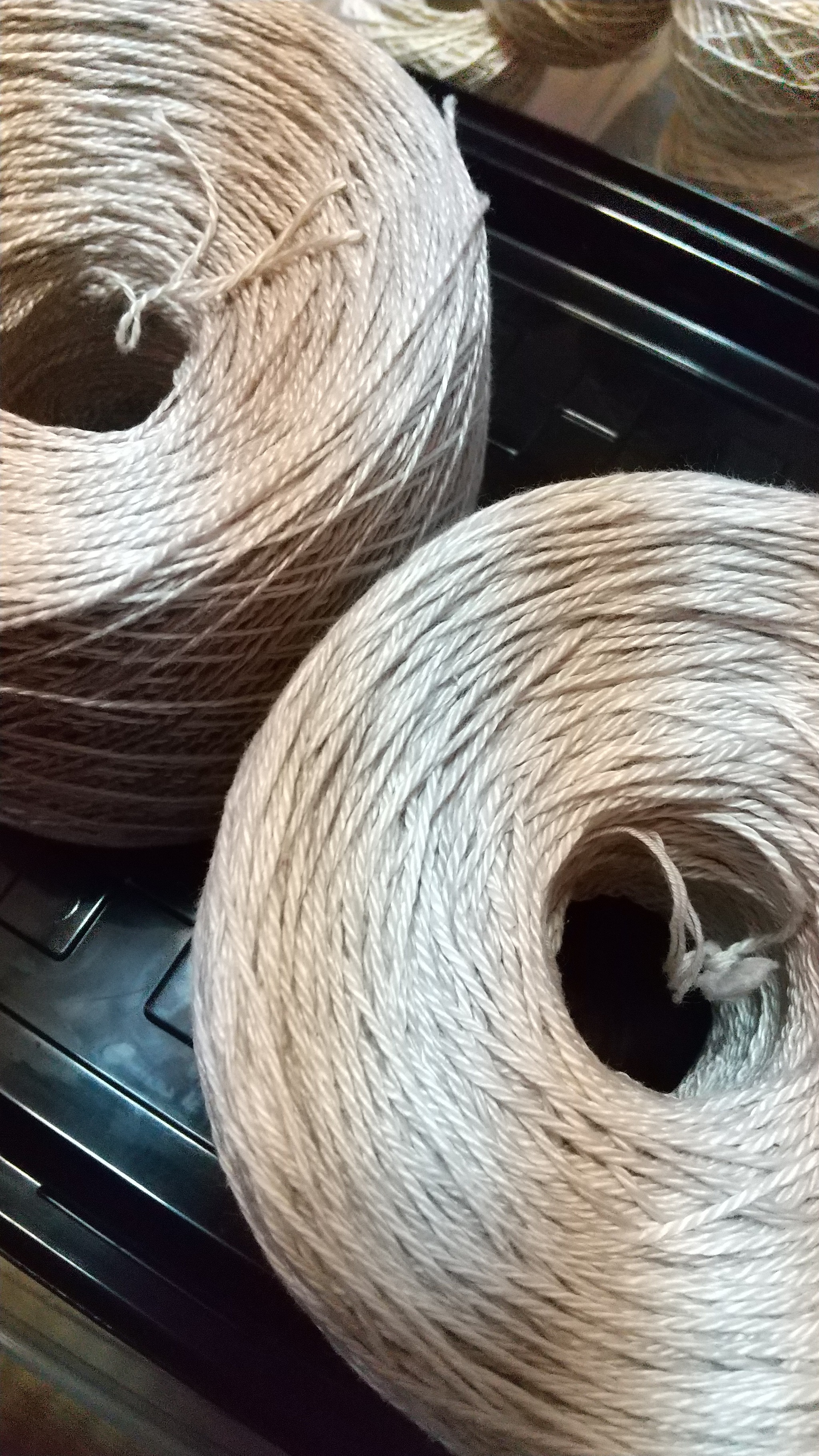 残った染液で染めたのは薄く、ピンクオークルのような色。(これはこれでいい色ですが)