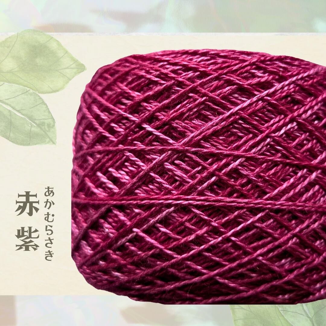 #草木染め #草木染め糸 #刺し子 #こぎん刺し #ダーニング #編み物 #ハンドメイド #手芸用品 #紫 #グラデーション #シルケットコットン #日本製 #ラックダイ #ログウッド #限定品 #深紫 #葡萄色 #赤紫 #ローズピンク #玉巻き #使いやすい糸 #綿コーマ糸