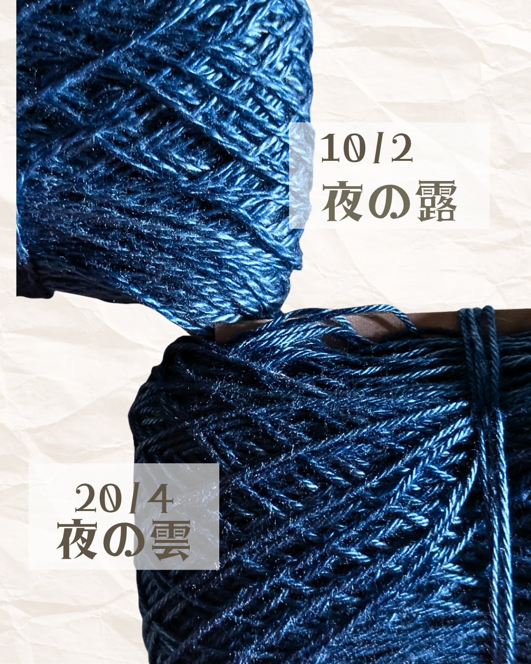 【8個まで同梱可】草木染め 刺し子糸「夜の露/夜の雲」藍染め 重ね染め シルケット加工 8g 約87m 10/2 20/4 青 紺 〜刺し子・ダーニング・アクセサリーなどに
