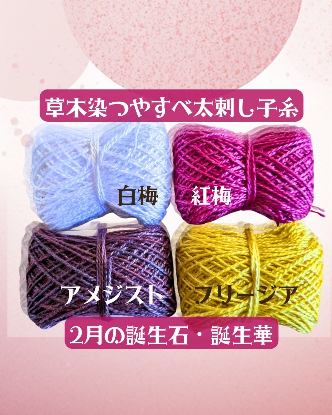 【限定】草木染め 太刺し子糸 2月誕生石・誕生花カラー 4色セット【アメジスト・梅・フリージア】刺し子・こぎん刺し・ダーニングなどに