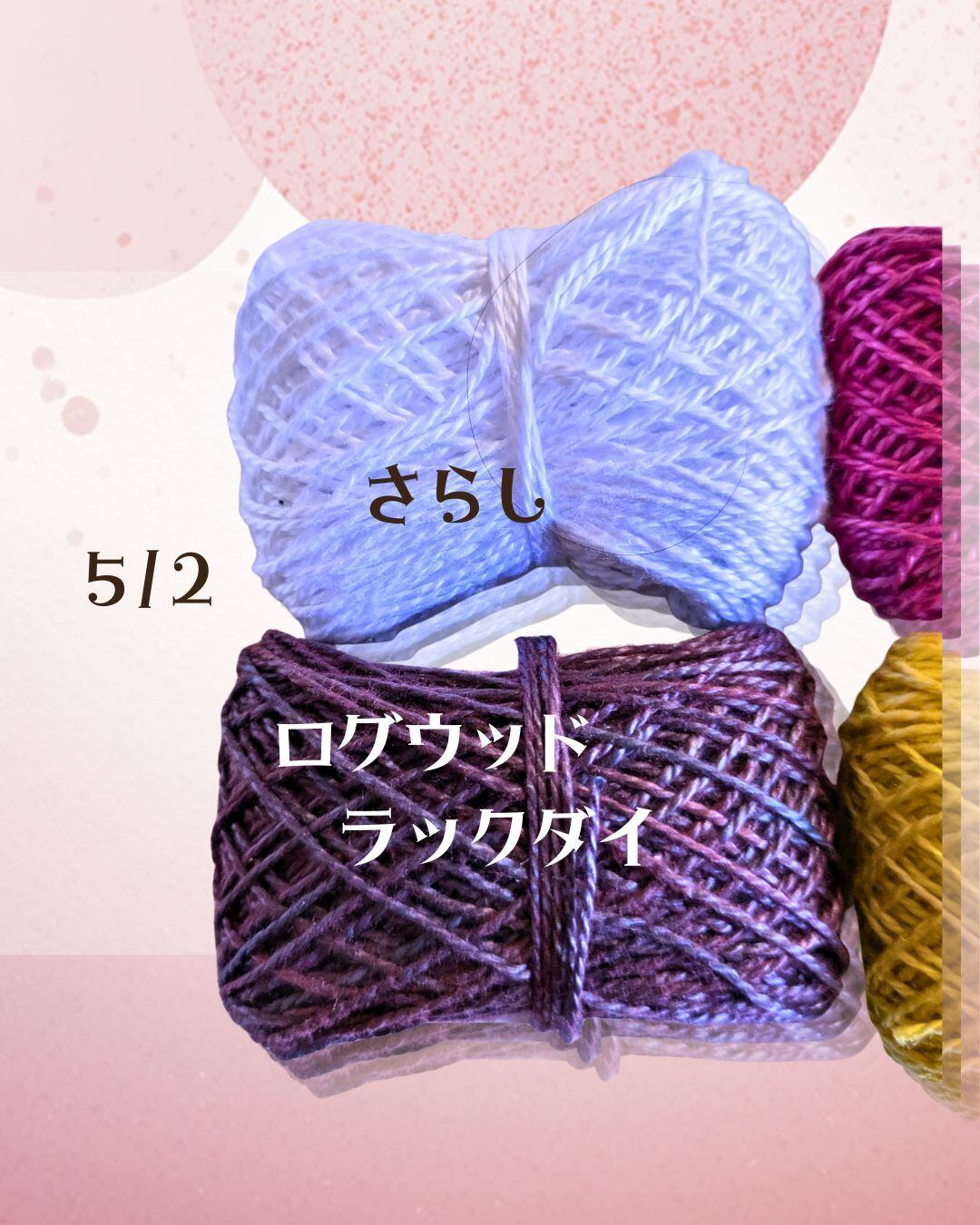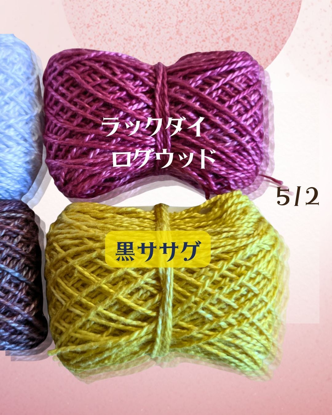※アメジスト[明かりによっては茶色に見える深い紫色。赤紫と紫のムラ染め](ログウッド・ラックダイ染め):10g(約42m)