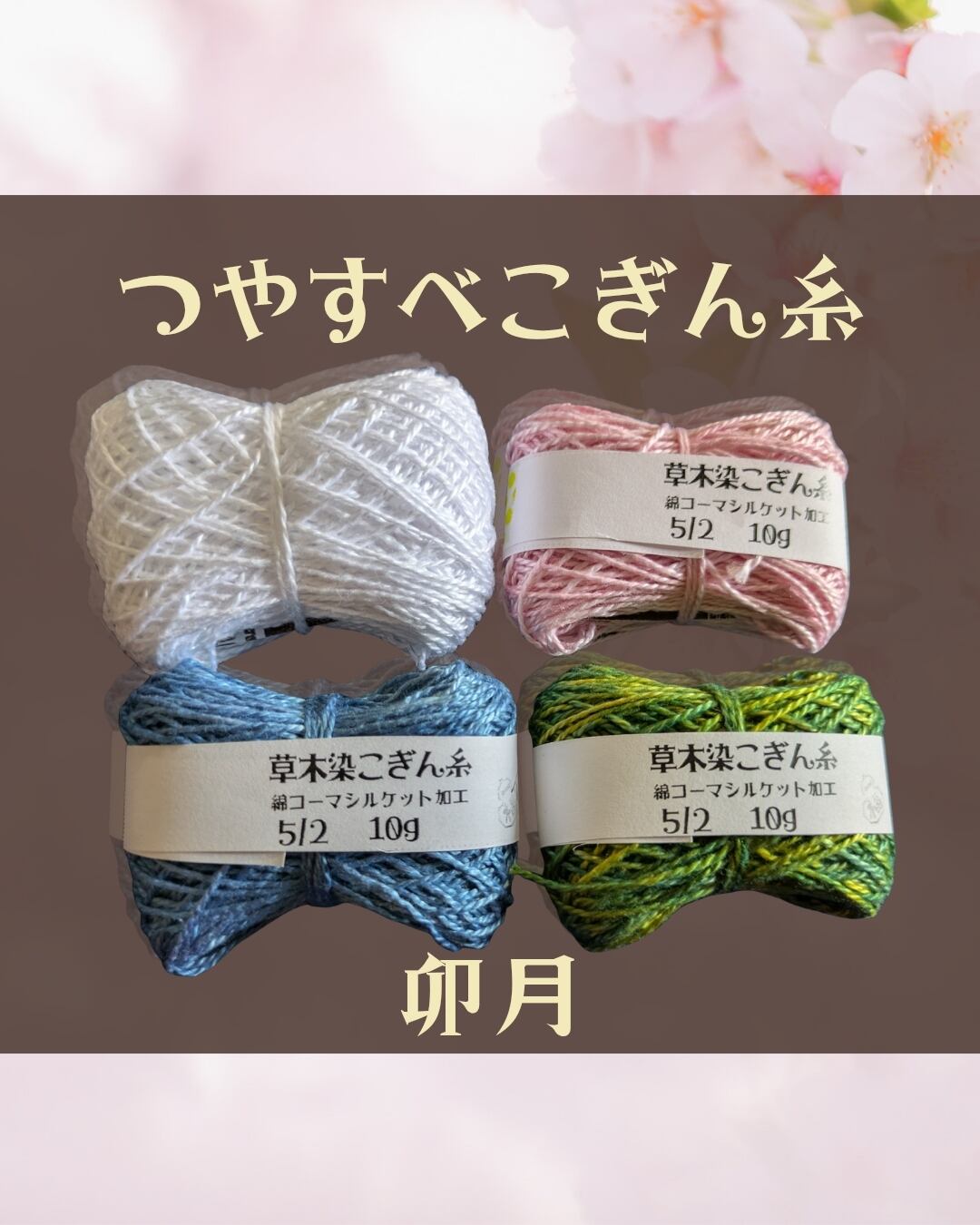 4月の情景を糸に託して。白を増量した限定1セットの特別な草木染めこぎん糸パック。※4月のみ2000円です。