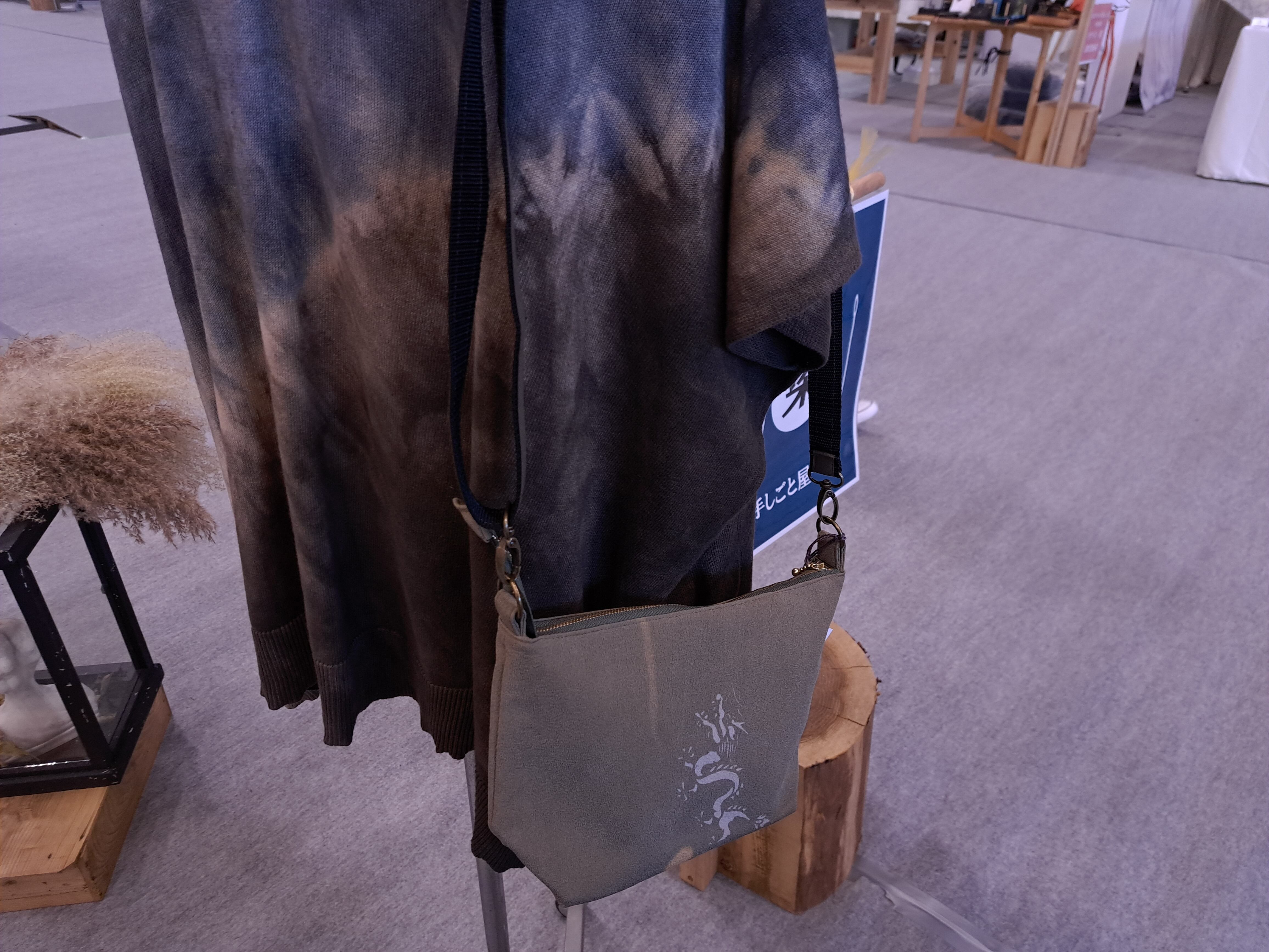 草木染のちりめん布のポシェットです。龍を型染めしました。