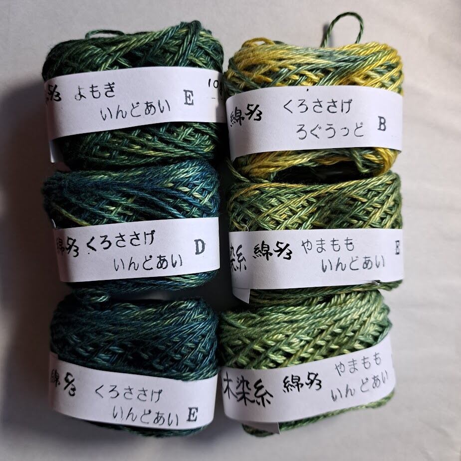 【送料込み】草木染めつやすべ綿コーマ糸5/2 10g×6 シルケット加工~Forest~刺し子・こぎん刺しに